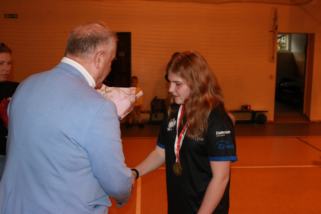 Brązowe medalistki Julia Wałdoch i Magdalena Lepak, srebrne Marta Faryno, Amelia Seydak i Sandra Resemann i złota Wanessa Gruchała z honorami zostały wczoraj (25.04.) przywitane podczas pierwszego treningu po powrocie z Ogólnopolskiej Olimpiadzie Młodzieży. W Boxing Team Chojnice to już tradycja, że dziewczyny odbierają kwiaty i upominki od prezesa Andrzeja Mielke po kolejnych sukcesach. A jak wiecie z Weekend FM, ten był ogromny, bo poza sześcioma medalami zapracowały na miano najlepszego klubu w Polsce wśród kadetek i drugiego ogólnie.