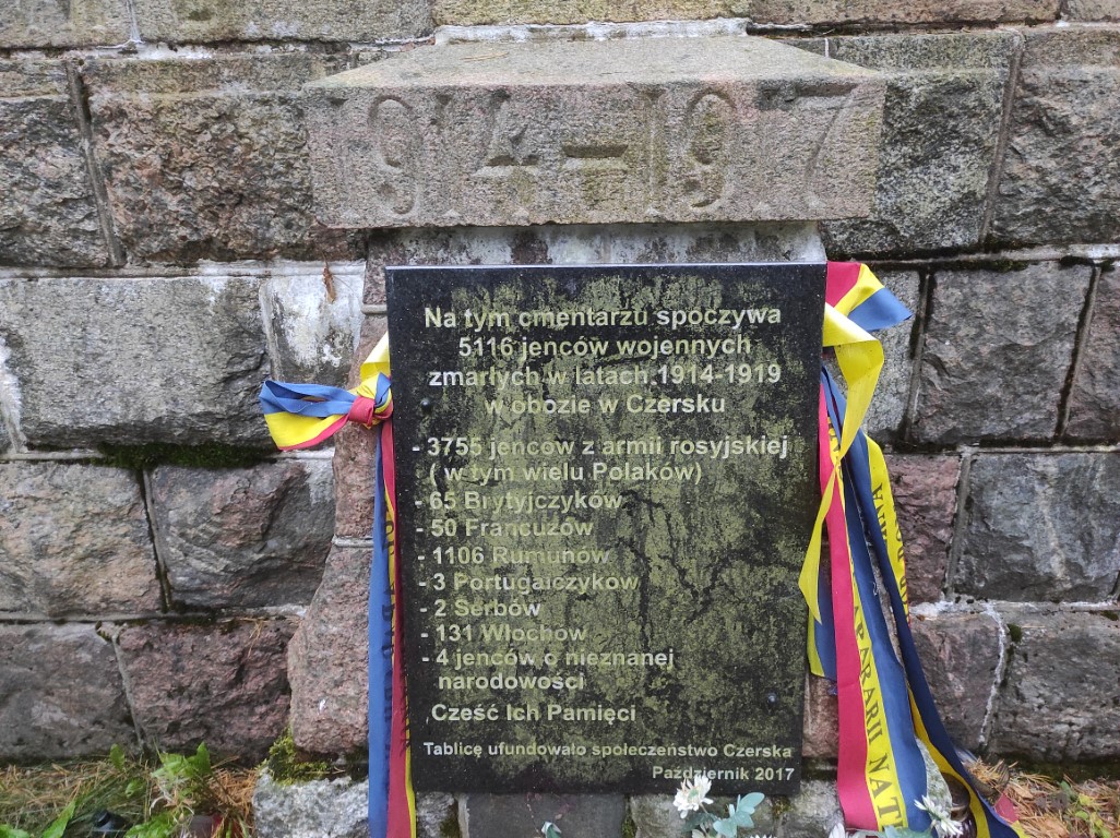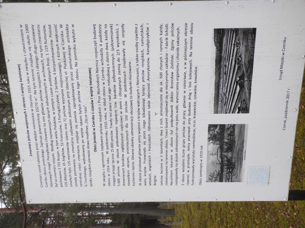 Jednym z nich był obóz w Czersku, funkcjonujący do roku 1919. Wiadomo, że już rok po powstaniu, mógł pomieścić około 25 tysięcy osób. Największą część z nich stanowili żołnierze armii rosyjskiej (w tym wielu Polaków), ale oprócz nich przetrzymywani byli także Rumuni, Włosi, a nawet Francuzi, Anglicy i Portugalczycy. Szacuje się, że w latach 1914-1919 zmarło tu nawet 25% jeńców. Pamiątką po obozie jest znajdujący się na obrzeżach Czerska tzw. cmentarz rosyjski. Posłuchacie: