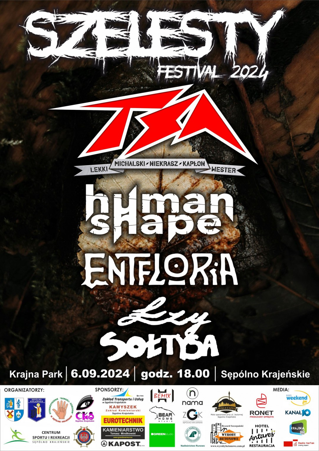 TSA MNKWL, HUMAN SHAPE, ENTFLORIA i ŁZY SOŁTYSA. Jutro w Sępólnie odbędzie się rockowy festiwal SZELESTY