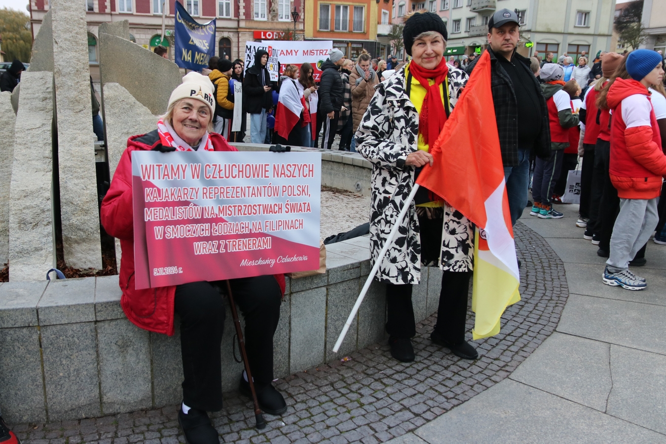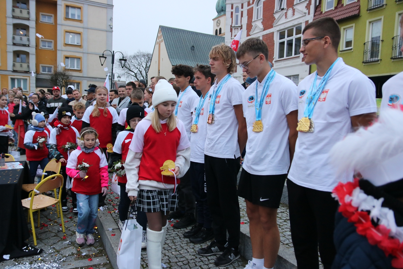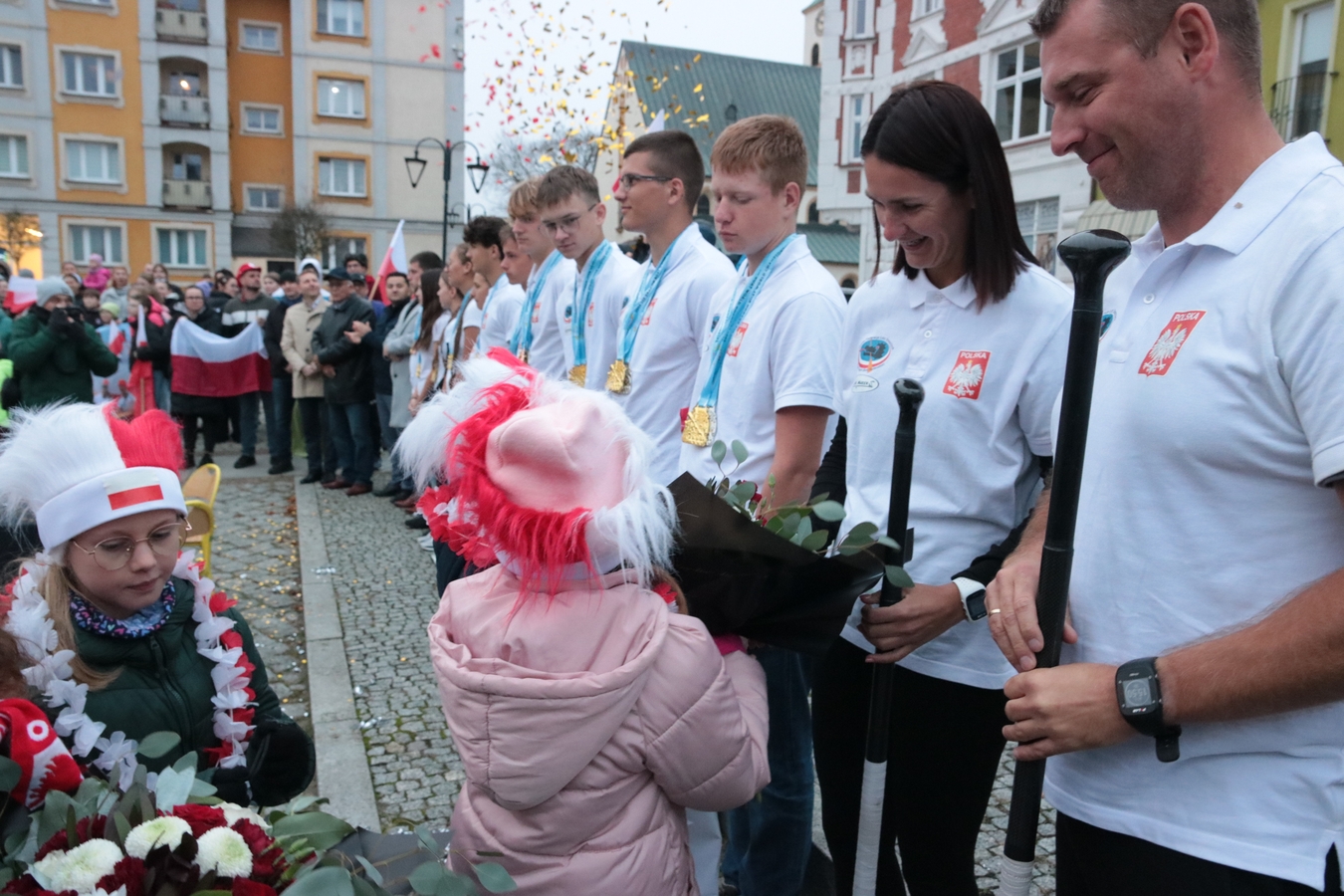 Huczne powitanie człuchowianie zgotowali swoim mistrzom świata. Dziś (5.11.) kajakarze Polstyru Człuchów i UKS-u Zespołu Szkół Sportowych wrócili z Filipin, gdzie wywalczyli trzy złote oraz po jednym srebrnym i brązowym medalu Mistrzostw Świata Juniorów w Wyścigach Smoczych Łodzi. Na Rynku czekał na nich tłum mieszkańców, szkolnych kolegów, oficjeli i bliskich.