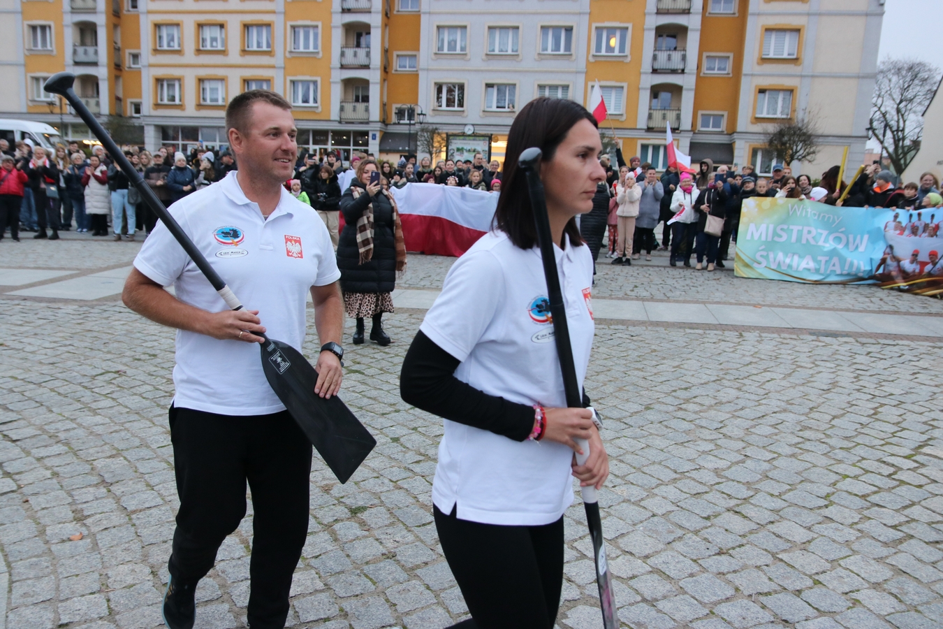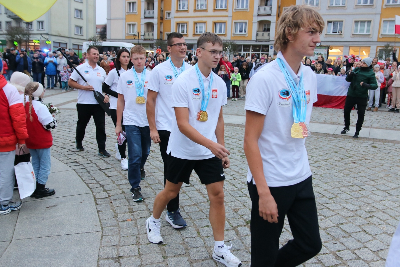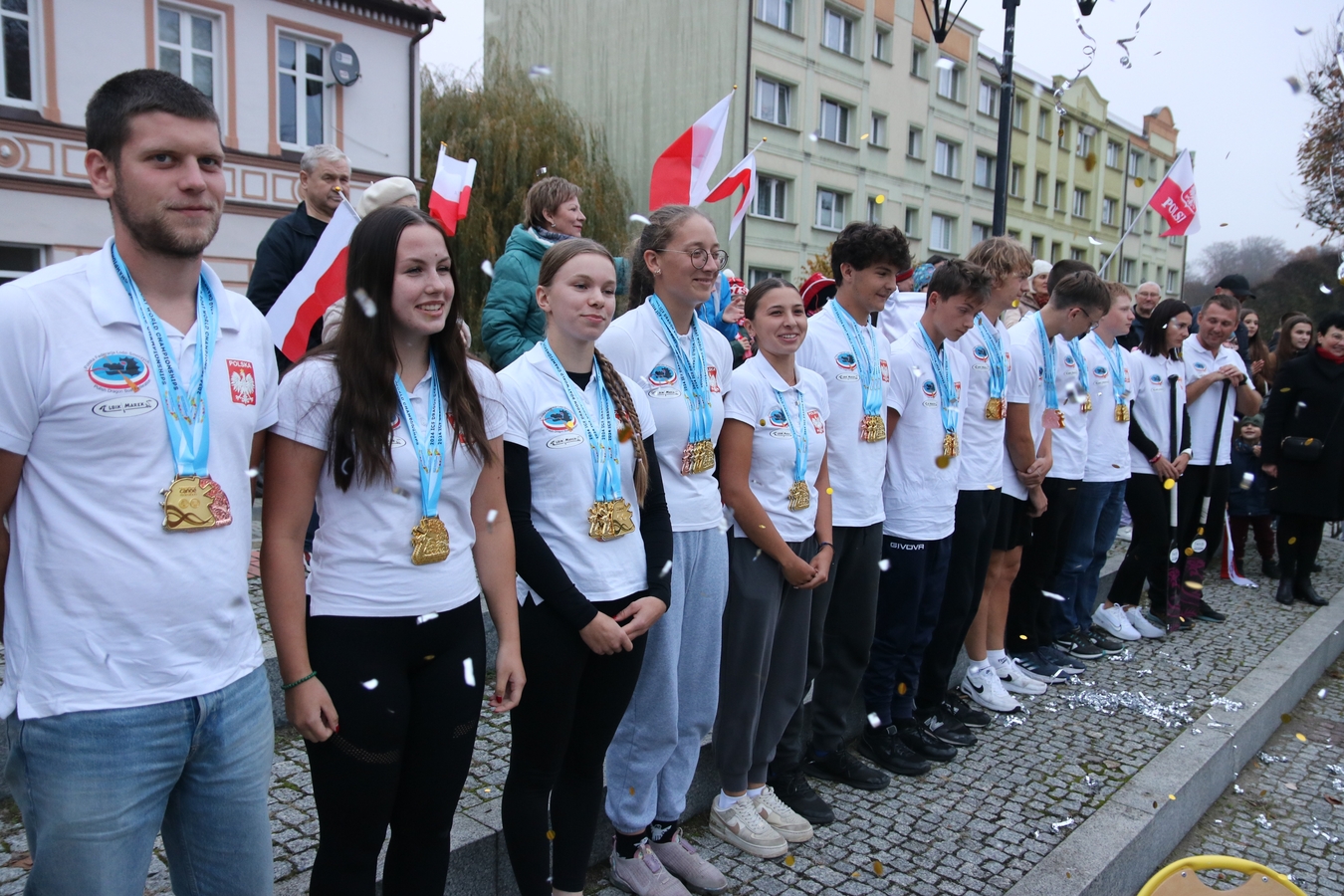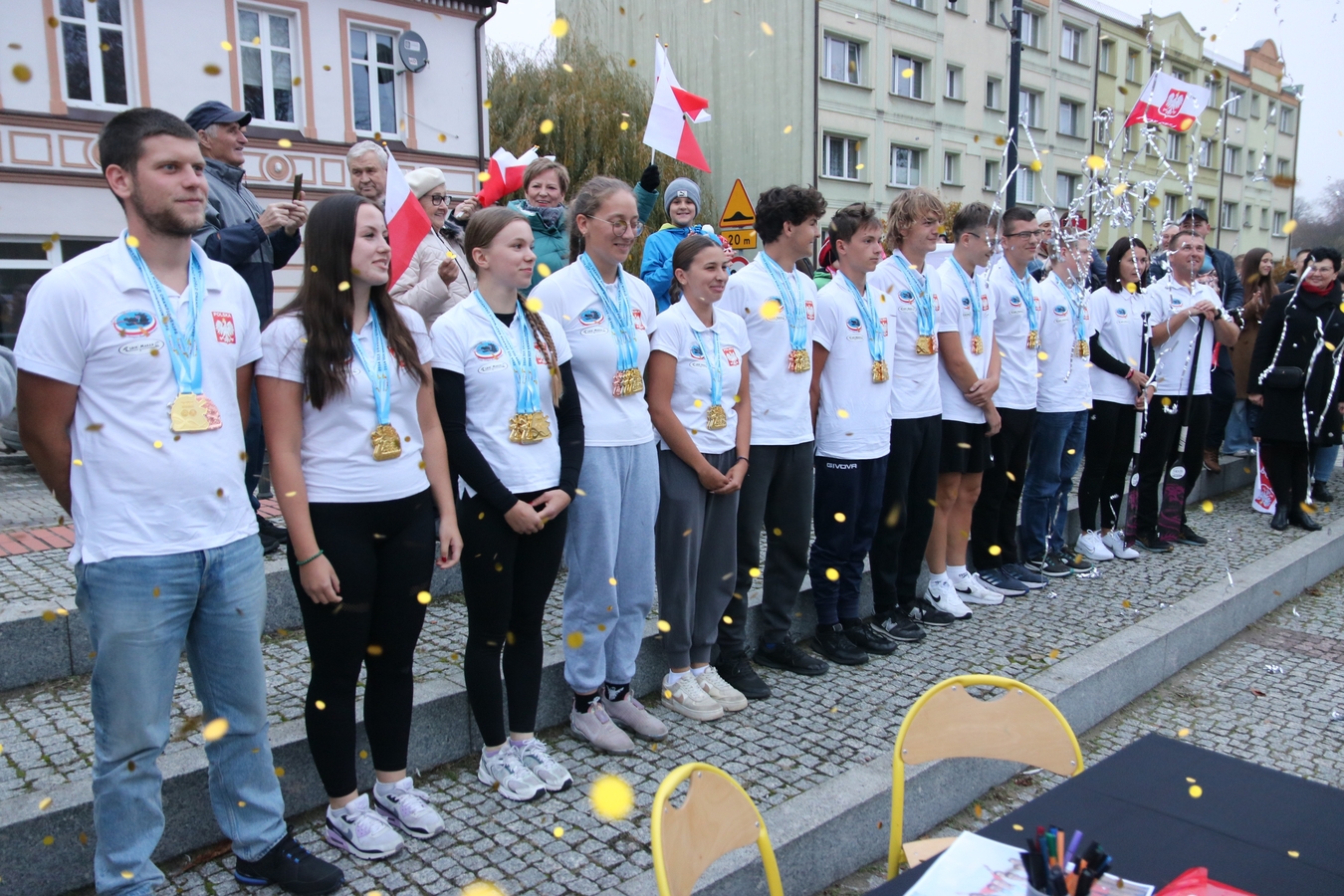 Huczne powitanie człuchowianie zgotowali swoim mistrzom świata. Dziś (5.11.) kajakarze Polstyru Człuchów i UKS-u Zespołu Szkół Sportowych wrócili z Filipin, gdzie wywalczyli trzy złote oraz po jednym srebrnym i brązowym medalu Mistrzostw Świata Juniorów w Wyścigach Smoczych Łodzi. Na Rynku czekał na nich tłum mieszkańców, szkolnych kolegów, oficjeli i bliskich.