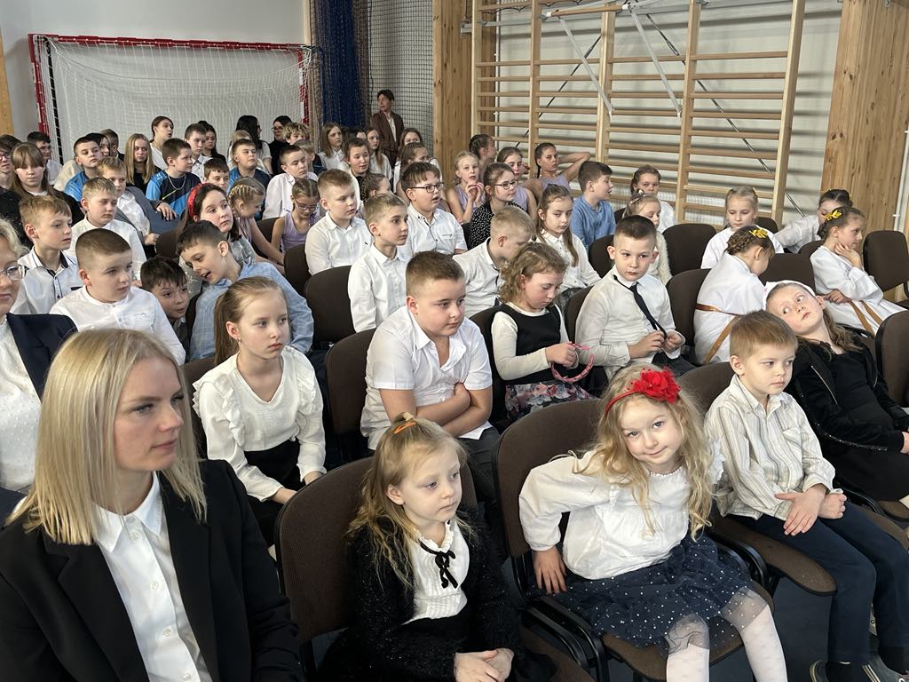 Uczniowie korzystali głównie z boiska, ale to wszystko na zewnątrz. A jak deszcz i śnieg, to hol korytarza, który trochę ciasny i nieprzystosowany do zajęć. No a teraz wybudowana nowoczesna sala z zaplecze, z boiskami pełnowymiarowymi do siatkówki, koszykówki, do nawet mini piłki nożnej. No jeśli chodzi o inwestycję, no na nią można powiedzieć czekaliśmy 60 lat. No i doczekaliśmy się . Marzenia się spełniły.