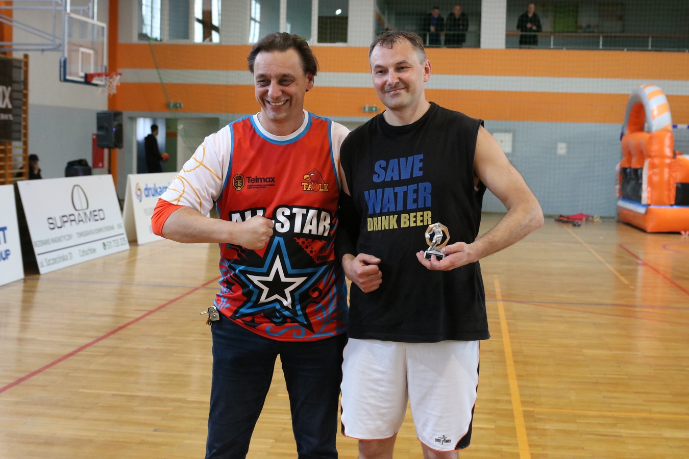 Mówi Weekend FM jeden z organizatorów i zawodników Oliwer Fiuk, który został wybrany najlepszym zawodnikiem meczu gwiazd. Mało tego, wygrał również konkurs wsadów i odebrał nagrodę dla MVP sezonu zasadniczego. Najlepszym obrońcą wybrano Piotra Rybarczyka. Turniej skillsów przy okazji meczu gwiazd wygrał Piotr Miętki, a rzutów za trzy – reprezentant Tczewa Dawid Topolski.