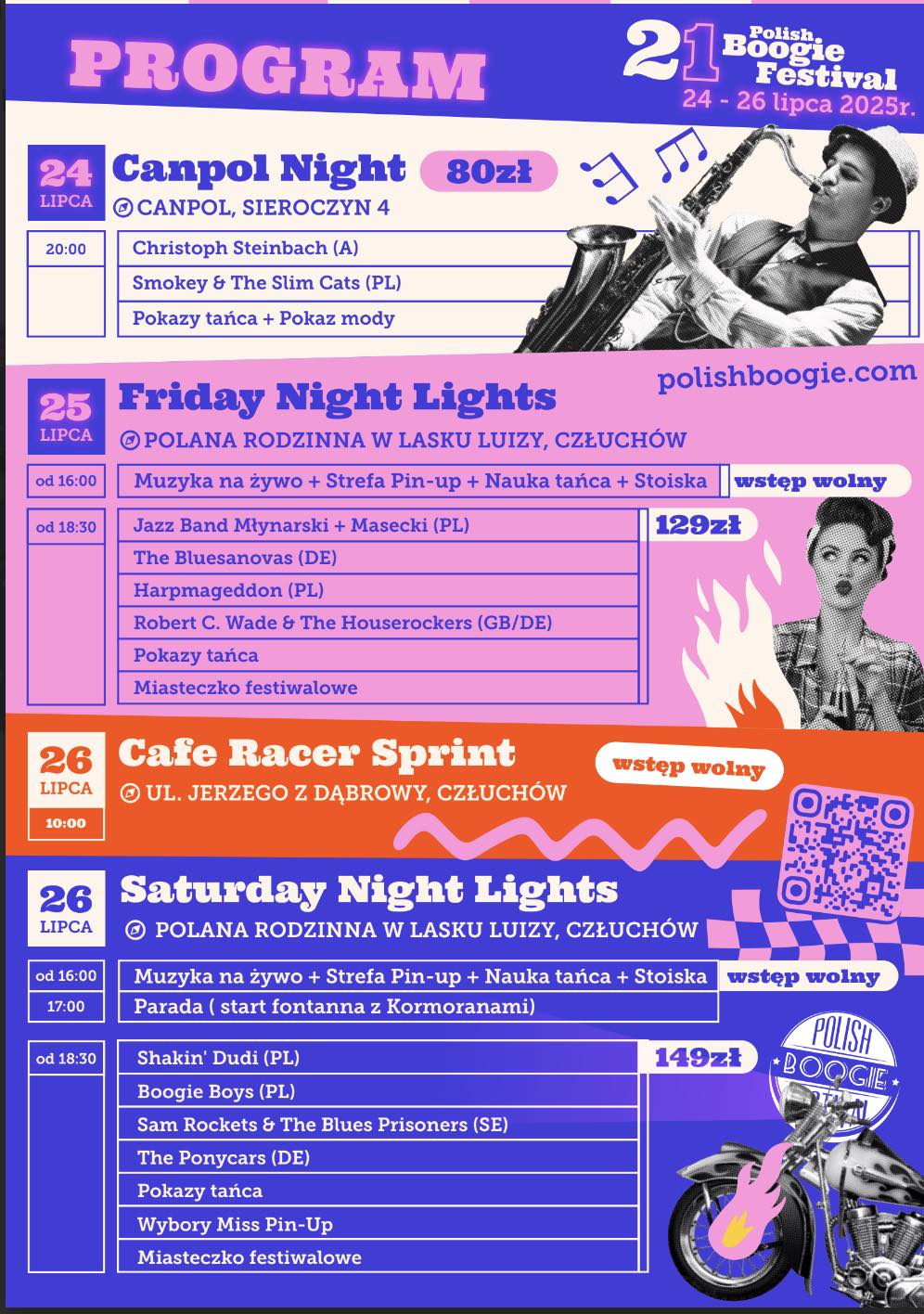 To plan na 21. edycję sztandarowej imprezy w Człuchowie - rusza Polish Boogie Festival. To święto retro muzyki, tańca, mody i motoryzacji. Na scenie zaprezentują się artyści z Polski, Niemiec, Austrii, Szwecji i Wielkiej Brytanii.