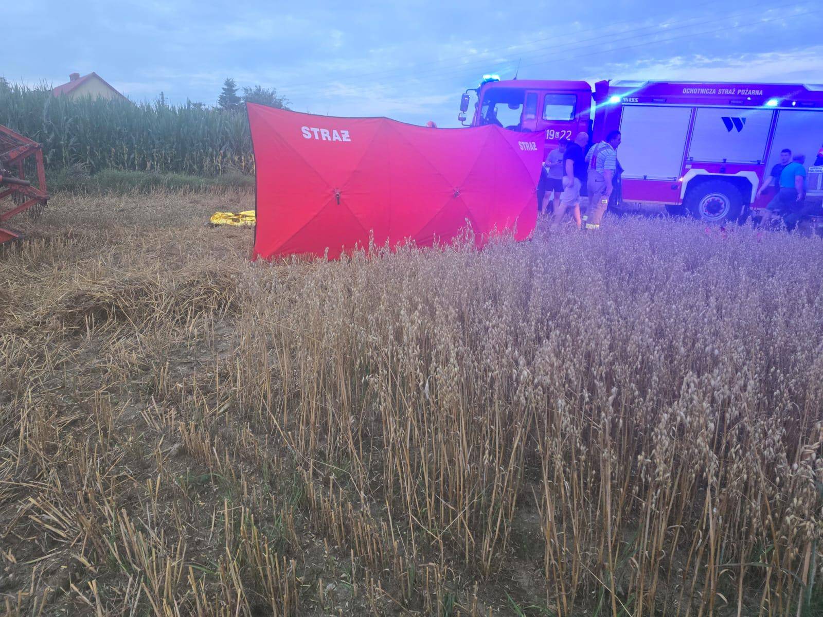 Śmiertelny wypadek podczas prac polowych w gminie Brusy. Mężczyzna został przejechany przez kombajn.