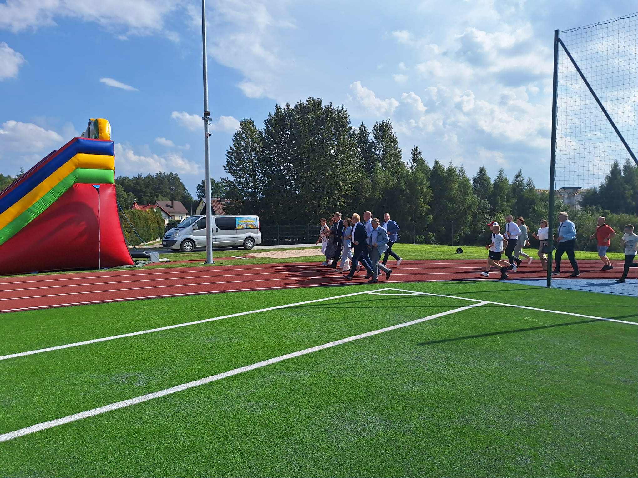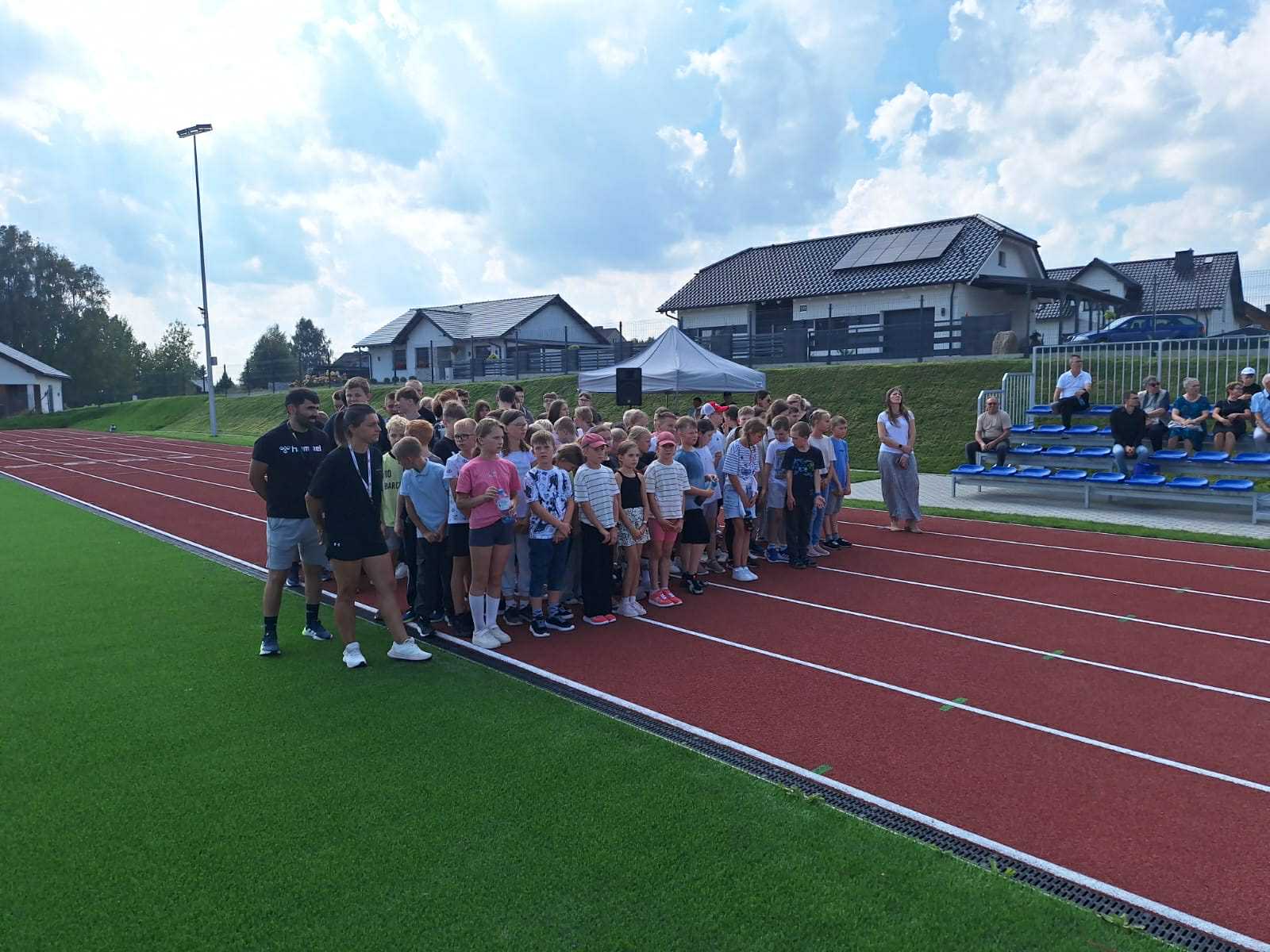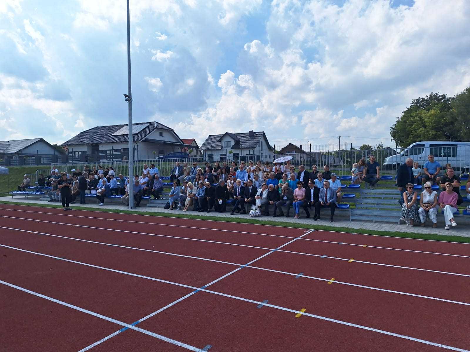 - Powstał kompleks złożony z boiska wielofunkcyjnego, jest to boisko do piłki nożnej o nawierzchni z trawy syntetycznej 45 na 90, czyli takie, które już nam pozwoli na to, żeby również nasze drużyny piłkarskie seniorskie mogły na nim prowadzić rozgrywki. Dodatkowo jest bieżnia lekkoatletyczna 300 m również o nawierzchni syntetycznej, całość terenu zagospodarowana, z trybunami.
