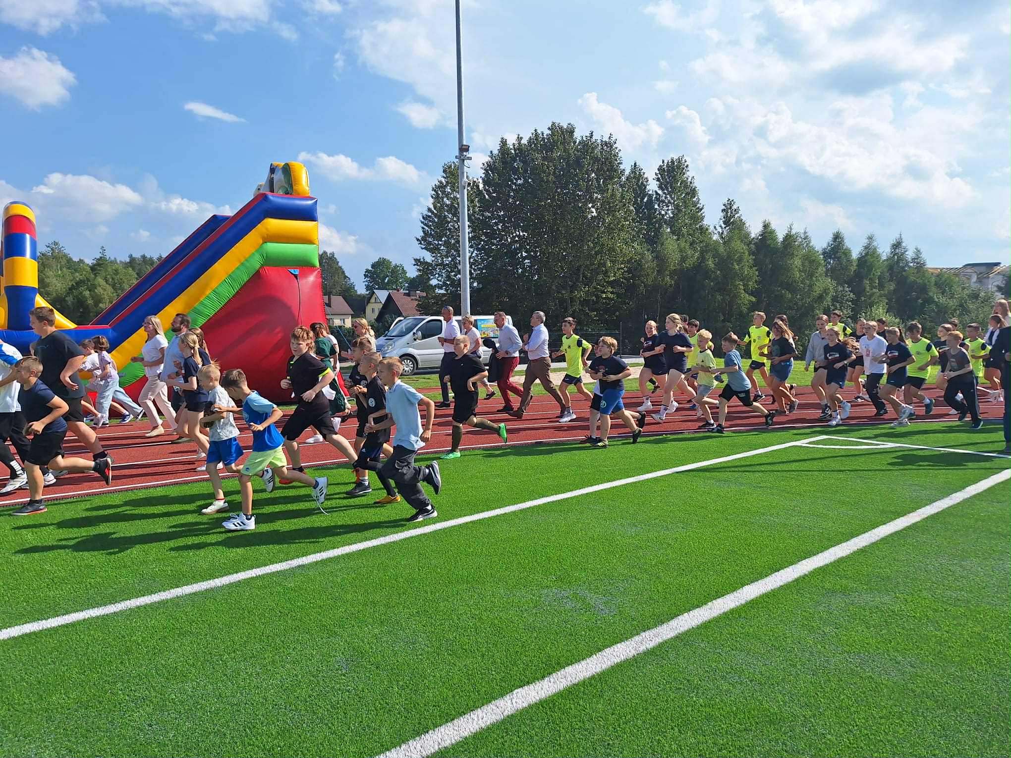 Powstały tu boisko do piłki nożnej, infrastruktura lekkoatletyczna, plac zabaw i kort tenisowy. W Nowej Karczmie oficjalnie oddano do użytku nowoczesny kompleks sportowy. Zamiast tradycyjnego przecięcia wstęgi, był wspólny bieg po nowej bieżni. Z nowej infrastruktury korzystać będą uczniowie tutejszej szkoły w ramach zajęć wychowania fizycznego. Po lekcjach boiska mają służyć również mieszkańcom i klubom sportowym.