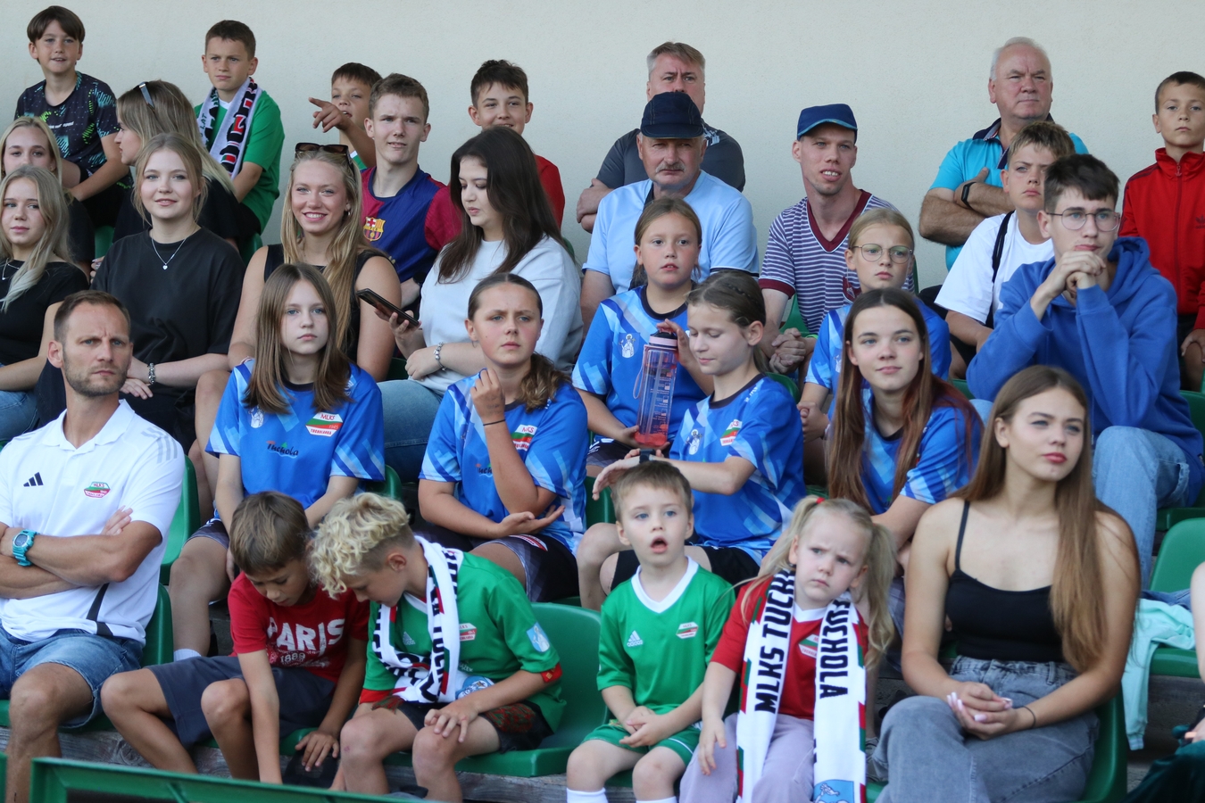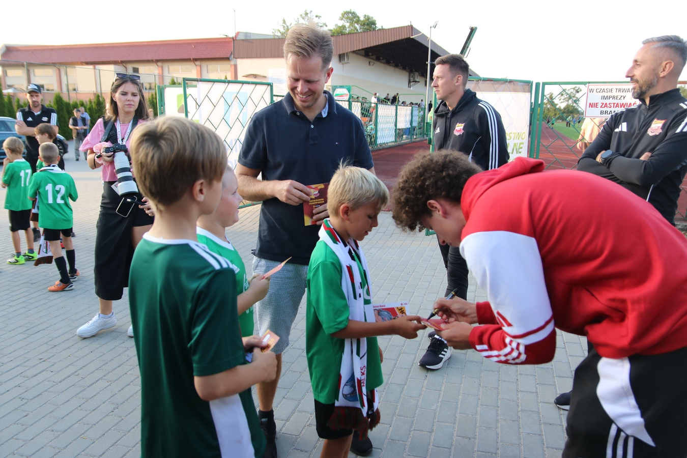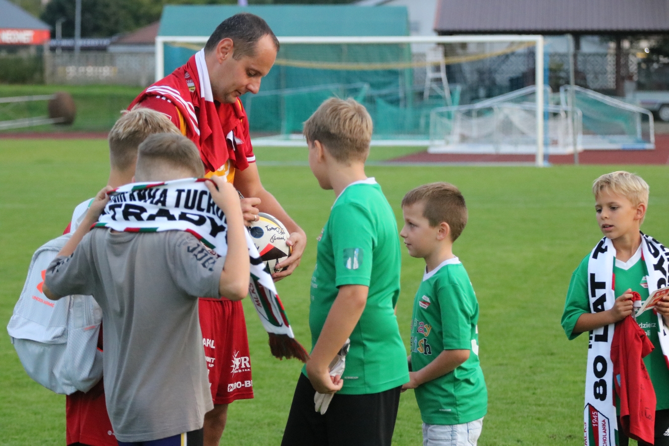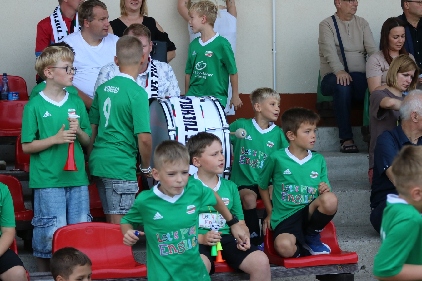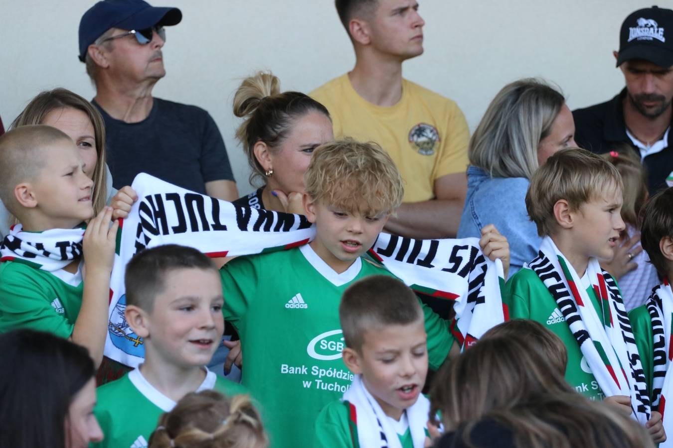 Piłkarze i trenerzy drugoligowca pojawili się na trybunach, żeby rozdać autografy, pozować do zdjęć i zobaczyć jak radzą sobie ich młodsi koledzy. Na boisku zmierzyły się bowiem dwaj beniaminkowie okręgówek – Tucholanka oraz trzecia drużyna Chojniczanki, wsparta kilkoma zawodnikami z czwartoligowych rezerw.