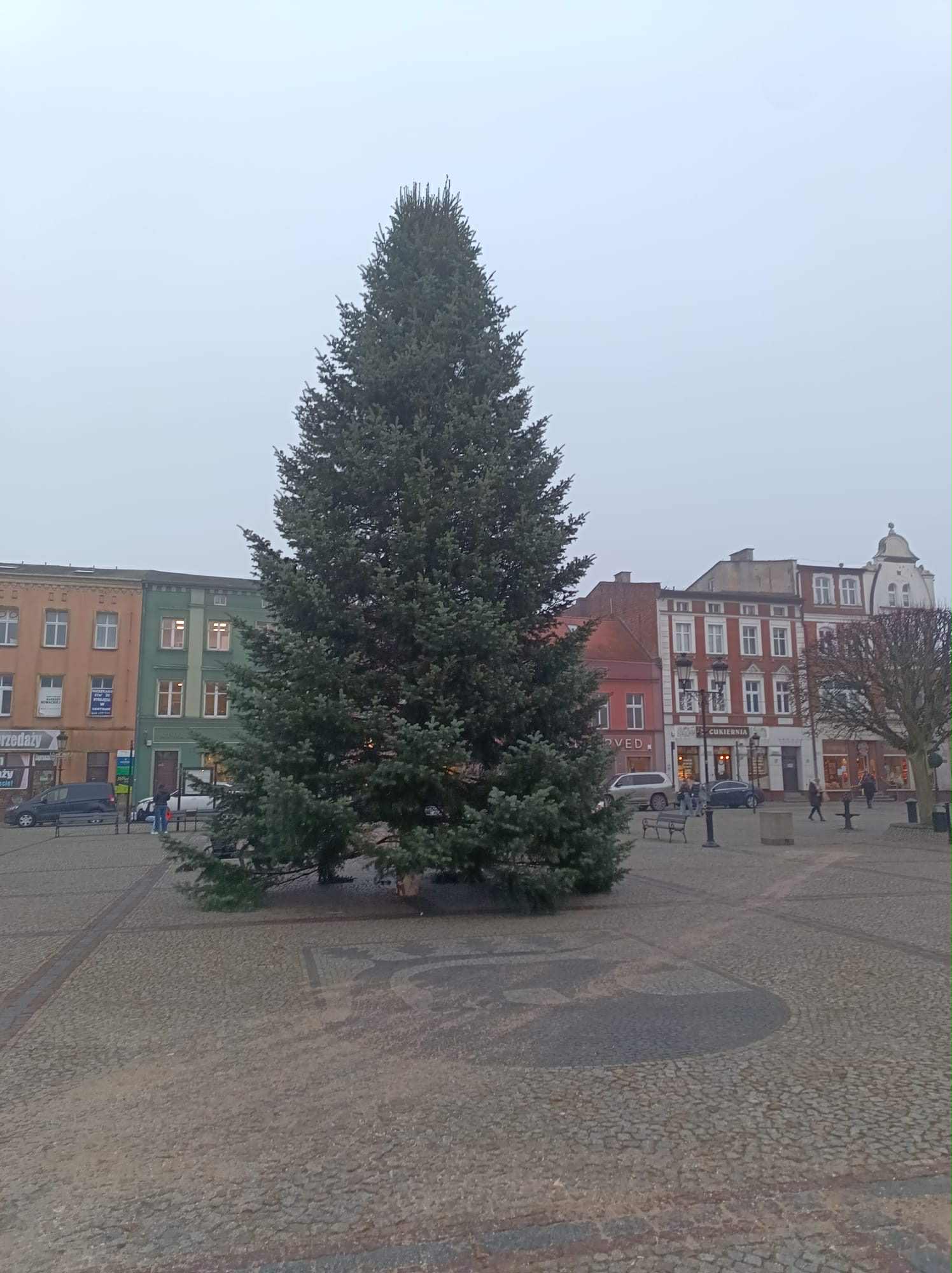 Jest to drzewko z gatunku jodła kalifornijska, wysokość około 12 metrów. Drzewko to zostało przekazane przez mieszkańców naszego miasta. Również została ustawiona choinka na placu przy ulicy Józefa Wybickiego, tak że w dwie choinki zawitały do naszego miasta. Tutaj w tym przypadku jest to jodła kaukaska, troszkę mniejsza, wysokość około 7 metrów. Chciałbym też mieszkańcom podziękować za taką otwartość i miły gest.