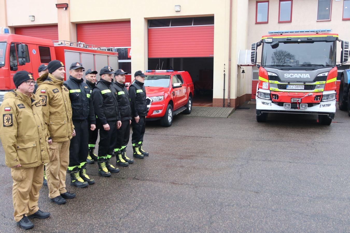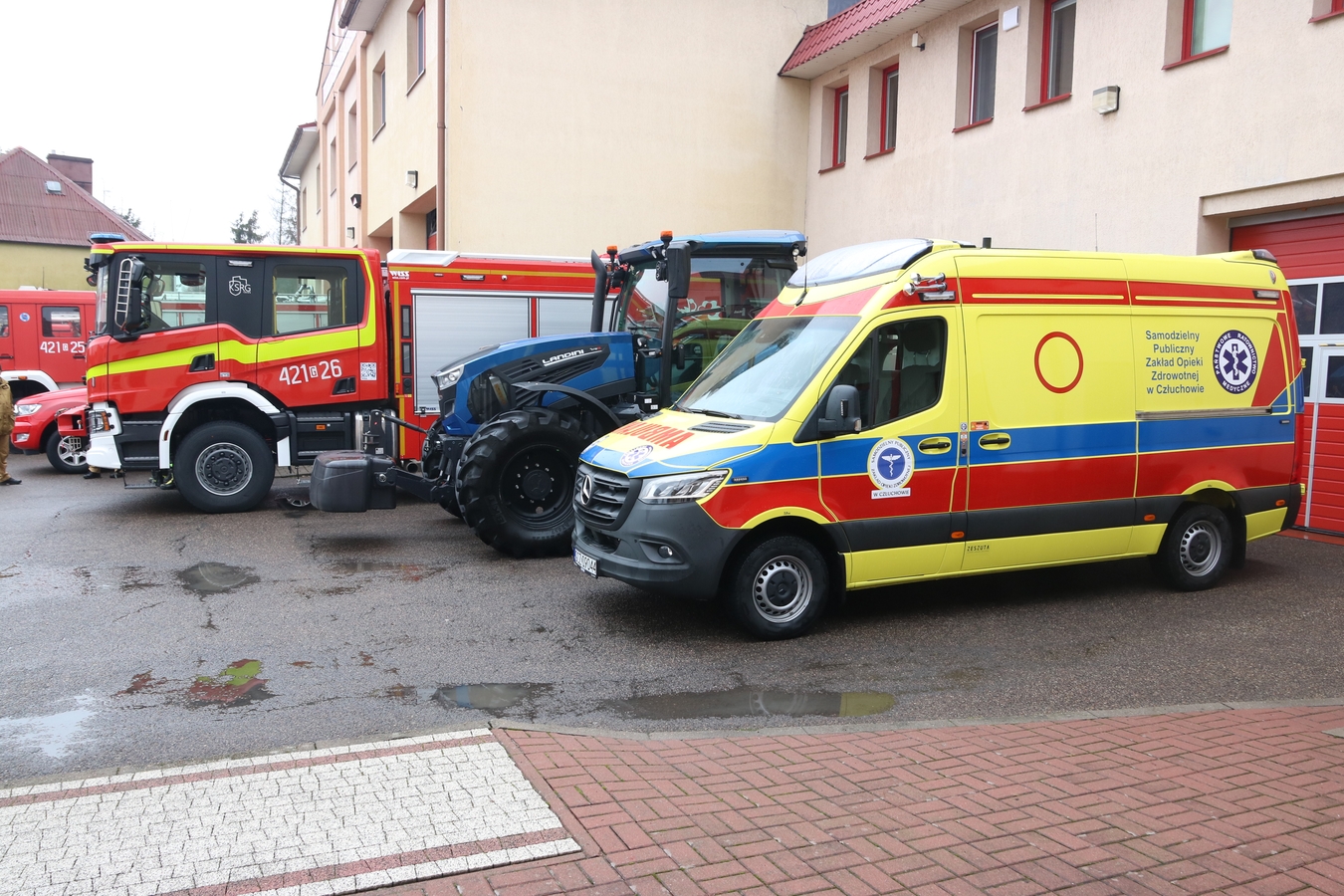 Nowe pojazdy za prawie 3,5 mln zł zostały wczoraj (8.12) oficjalne przekazane służbom w powiecie człuchowskim. Szpital otrzymał nowy ambulans, Powiatowy Zakład Transportu Publicznego - wielofunkcyjny ciągnik, a Komenda Powiatowa PSP w Człuchowie - ciężki wóz ratowniczo-gaśniczy. Scania z 350-konnym silnikiem i zbiornikiem o pojemności 8 tys. 300 litrów zastąpi 19-letniego MAN-a. Sam pojazd strażaków kosztował 2 mln zł.