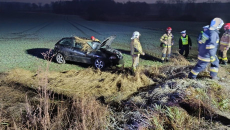 Dachowanie na drodze wojewódzkiej 236 w pobliżu Drzewicza, w gminie Chojnice. Kierująca trafiła do szpitala (AKTUALIZACJA)