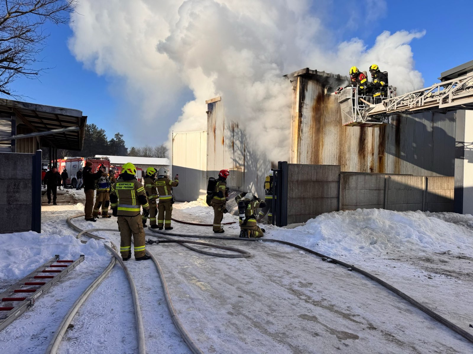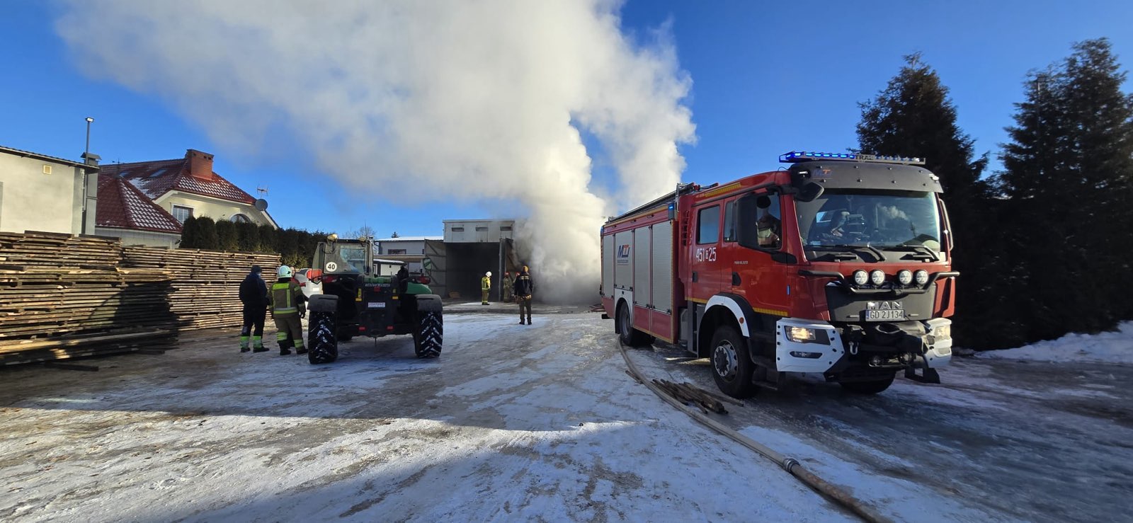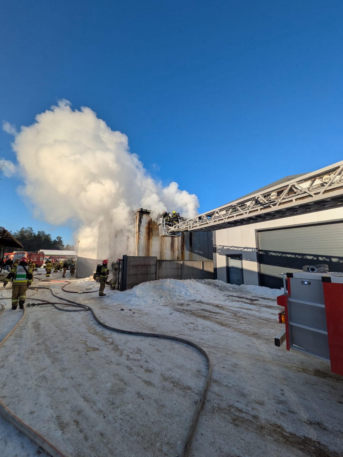 Groźny pożar w Karsinie, w powiecie kościerskim. Ogień wybuchł w suszarni na terenie zakładu meblarskiego. Do zdarzenia doszło około godziny 8.20. Po przybyciu na miejsce zastępów ochrony przeciwpożarowej suszarnia była objęta w całości pożarem: