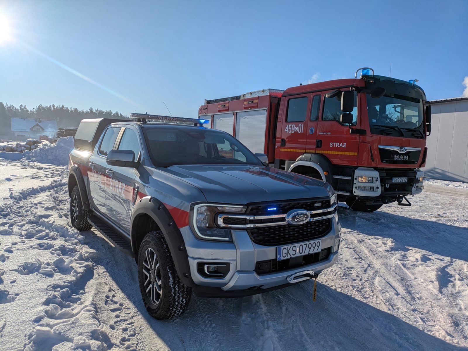 Na miejscu działa w tym momencie 11 zastępów straży pożarnej, na miejscu również jest dowódca jednostki ratowniczo-gaśniczej w Kościerzynie i zastępca komendanta Powiatowego PSP w Kościerzynie, który kieruje całym działaniem ratowniczym. Pożar został opanowany, trwa wywożenie służącego się drewna które zostało objęte pożarem.