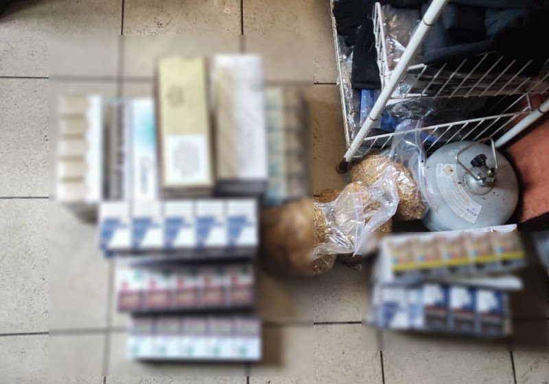Na miejscu ujawniono 396 paczek papierosów różnych marek, nieposiadających wymaganych polskich znaków akcyzy, a także trzy worki strunowe z tytoniem o łącznej wadze około 1,5 kilograma. Łącznie w sprawie zabezpieczono 413 paczek, czyli 8260 sztuk papierosów, oraz tytoń bez wymaganych oznaczeń skarbowych.