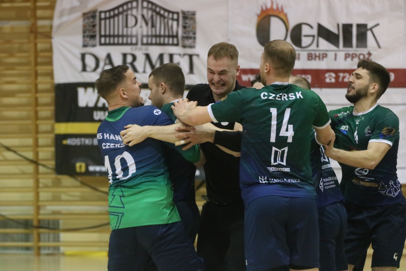 Jego podopieczni mecz rozpoczęli świetnie, bo od prowadzenia 7:2. Na przerwę czerszczanie schodzili jednak przegrywając dwoma bramkami. Gdy po zmianie stron wyrównali, oba zespoły rzucały gola za golem – aż do samego końca utrzymywał się remis. Dzięki zwycięstwu w rzutach karnych, czerszczanie dopisali dwa punkty do swojego konta. To ich druga wygrana z rzędu.