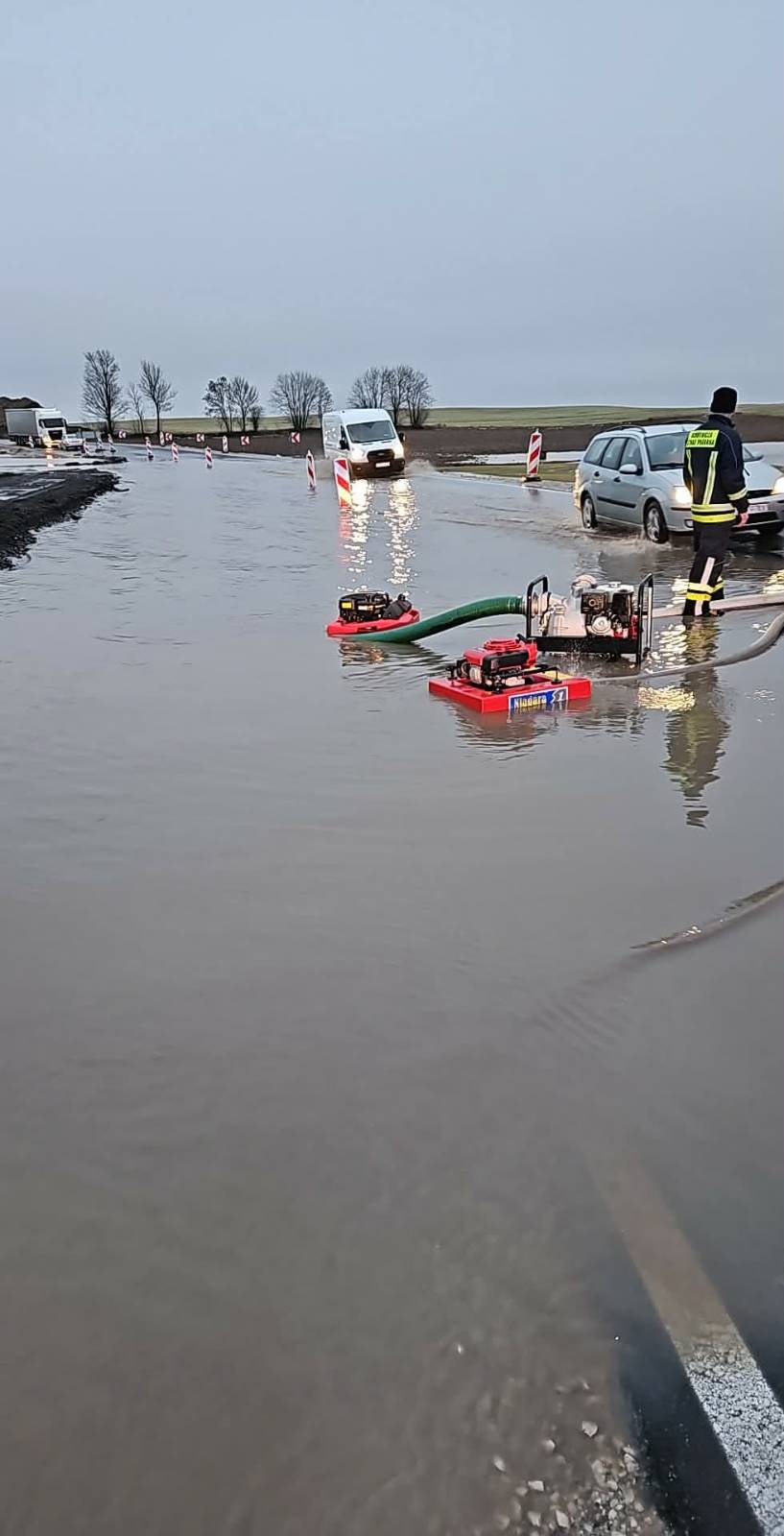 Pełne ręce roboty miała Powiatowa Straż Pożarna w Sępólnie Krajeńskim w godzinach nocnych i porannych. Wszystko za sprawą roztopów i długo utrzymujących się opadów deszczu. Na terenie całego powiatu doszło do zalań i podtopień zarówno piwnic w domach jednorodzinnych, jak i hal produkcyjnych w zakładach pracy. Podtopienia pojawiły się także na drodze krajowej nr 25 w miejscowości Olszewka i Obodowo, gdzie 6 pomp próbuje wraz z zarządcą drogi opanować sytuację. Ruch samochodowy w tym miejscu jest mocno utrudniony.