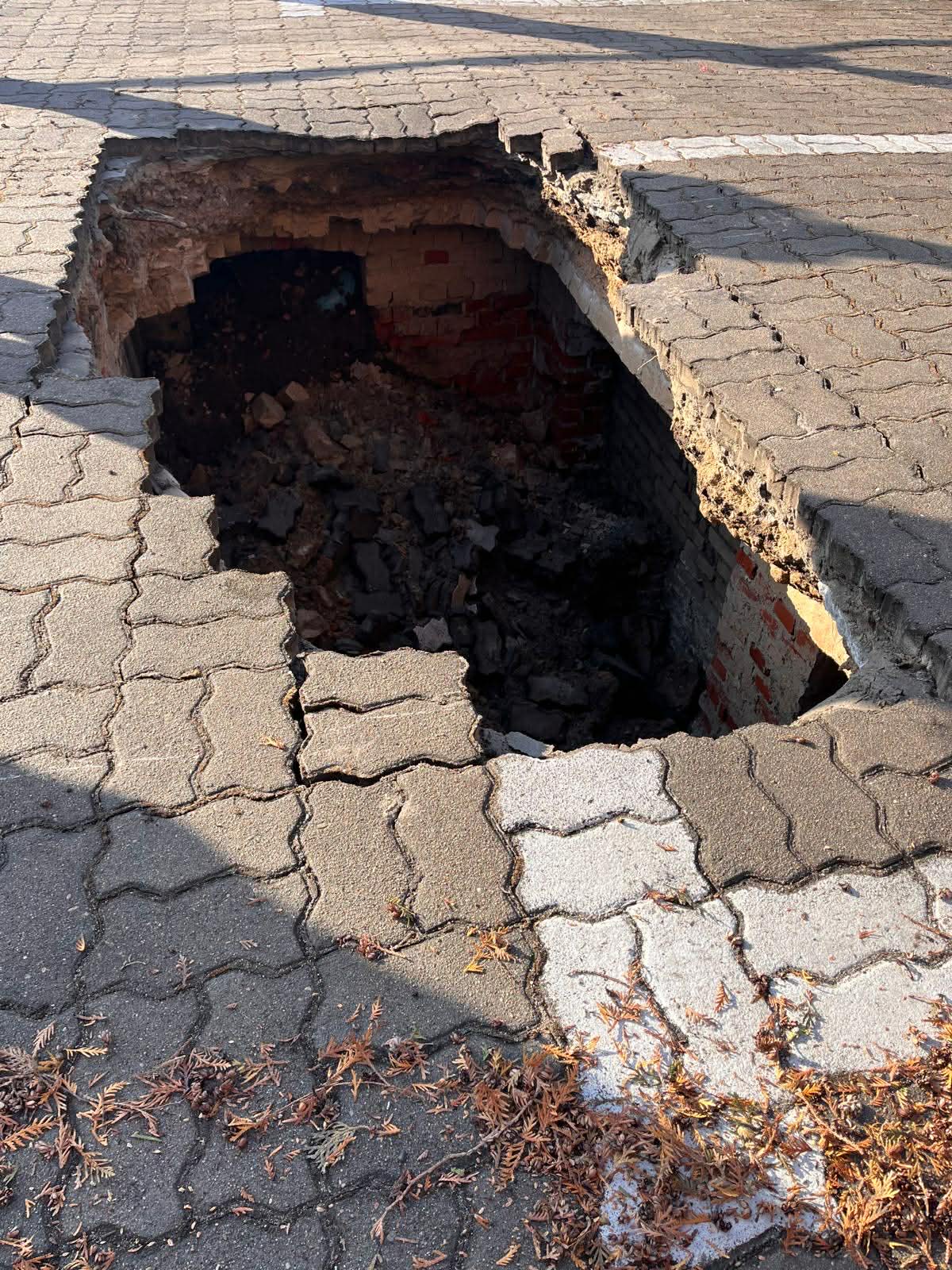 Na parkingu zlokalizowanym za pensjonatem, który znajduje się przy zamku w Człuchowie zapadł się strop piwnicy, która znajdowała się pod tym parkingiem. Powstał otwór o wymiarach około 3 x 1 m, głębokość tej piwnicy jakieś 2 m i dwa zaparkowane pojazdy, które tam się znajdowały, wpadły tylnymi kołami właśnie w tą dziurę. Usunęliśmy pojazdy przy użyciu sprzętu pneumatycznego, miejsce zostało zabezpieczone i przekazane właścicielowi z zaleceniami nieużytkowania tego terenu.