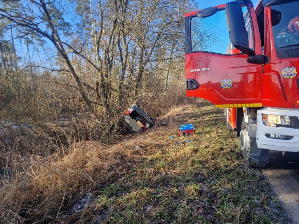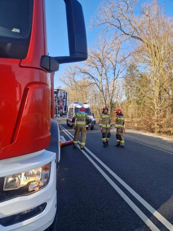 Zgłoszenie wpłynęło do nas o 8:50. Na miejscu doszło do zderzenia dwóch samochodów osobowych. Jeden z nich leżał na boku. Jedna osoba została poszkodowana, została zabrana do szpitala w Chojnicach, w celu wykonania dalszych badań diagnostycznych. Na miejscu pracowały również zespół ratownictwa medycznego oraz policja