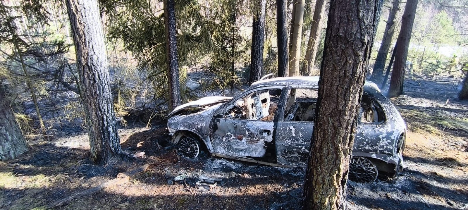 W niedzielę otrzymaliśmy zgłoszenie o spalonym aucie oraz poszyciu leśnym na terenie Nadleśnictwa woziwoda. Policjanci na miejscu wykonali niezbędne czynności procesowe. Obecnie prowadzone jest postępowanie w celu ustalenia okoliczności tego zdarzenia oraz danych właściciela pojazdu.