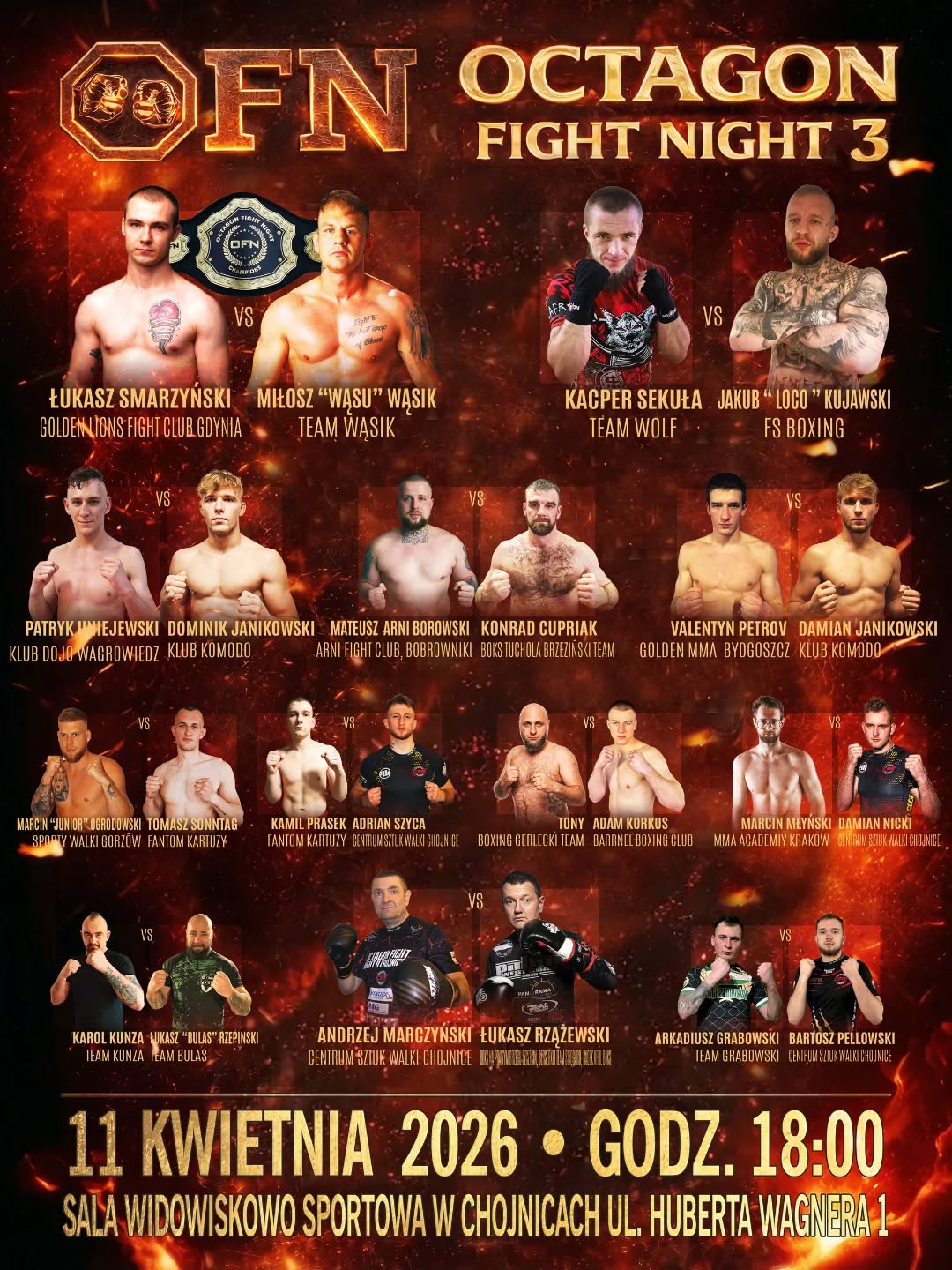 Hala miejska w Chojnicach po raz trzeci będzie areną gali sztuk walki Octagon Fight Night. Centrum Sztuk Walki Chojnice szykuje 12 pojedynków w formułach MMA, cage boxing i boksu na gołe pięści. O samych walkach oraz dodatkowych atrakcjach mówił w Weekend FM główny trener CSW Daniel Jetz.