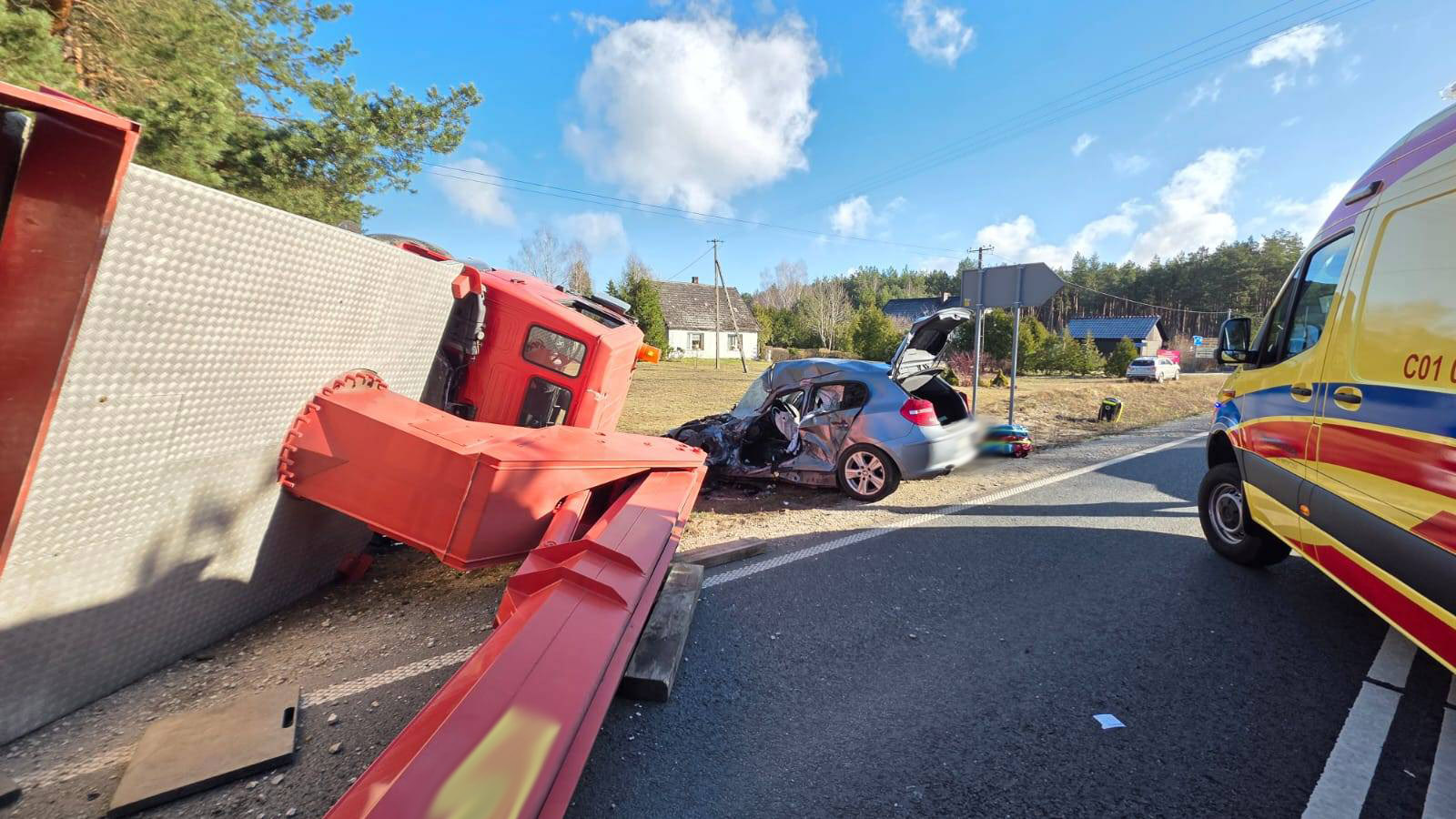 Policjanci wstępnie ustalili, że 19-letnia kierująca BMW nie ustąpiła pierwszeństwa przejazdu i zderzyła się z pojazdem ciężarowym, którym kierował 39-latek. Kobieta została przetransportowana śmigłowcem do szpitala w Bydgoszczy.