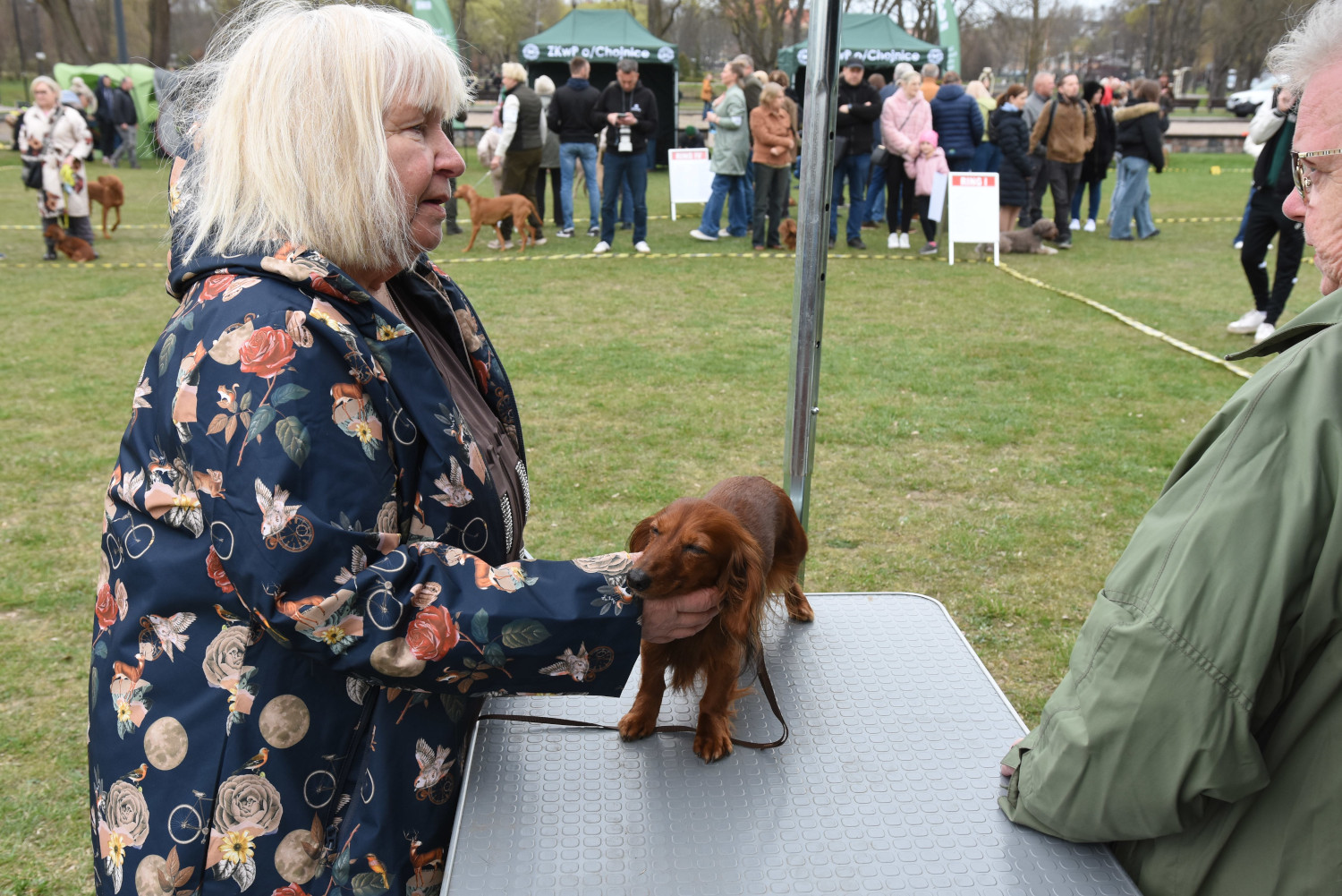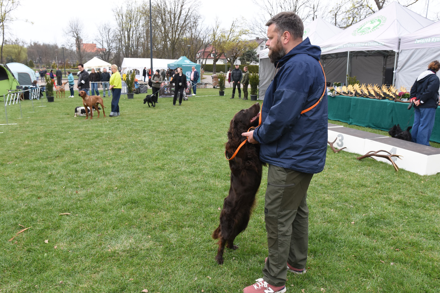 Dzisiaj mamy wystawę psów rasowych, psów grup myśliwskich. Jest około 165 psów 40 kilku ras. Są tutaj jamniki różnego rodzaju: gładkowłose, szorstkowłose, miniaturowe, królicze i standardy. Mamy również całą gamę terierów, psów dowodnych takich jak labradory i golden retrievery, są również posokowce, naprawdę wiele różnych ras. Trzeba to zobaczyć, żeby wiedzieć, o czym mówimy.