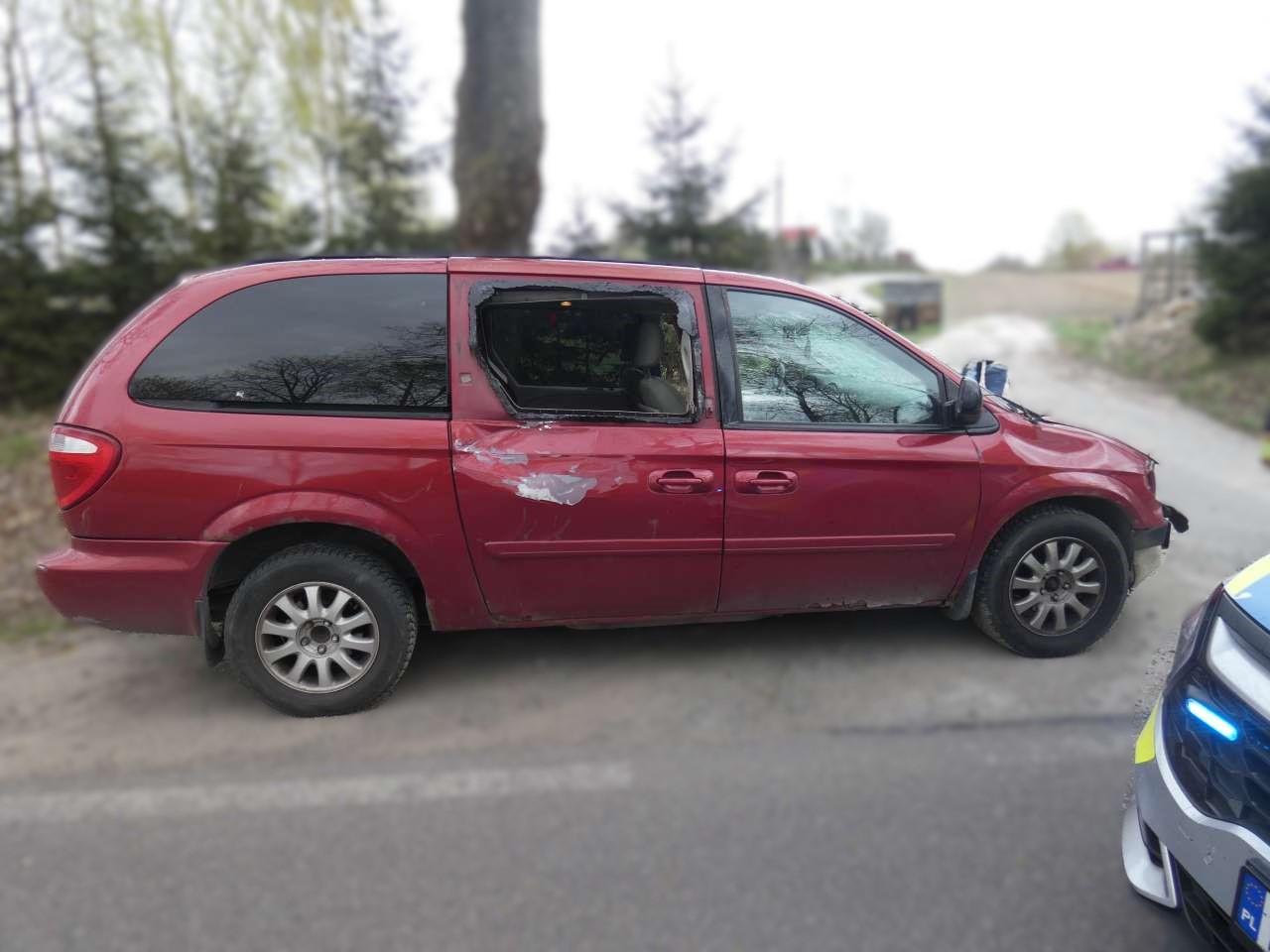 Do niebezpiecznego zdarzenia doszło w sobotę (25.05.) w Grabówku w gminie Nowa Karczma. Na drodze wojewódzkiej nr 224 na jadący samochód Chrysler Voyager spadła gałąź, złamana przez silny wiatr: