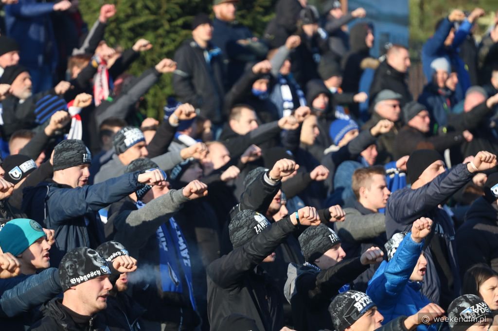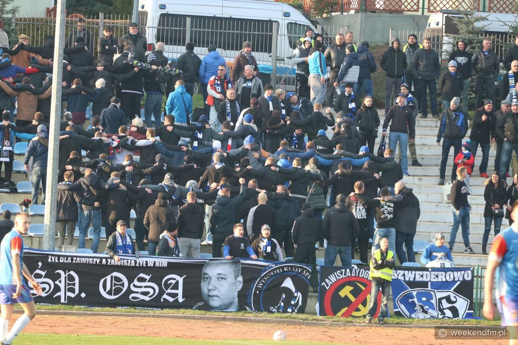 Mecz z trybun obserwowało kilkuset fanów bydgoskiego Zawiszy.