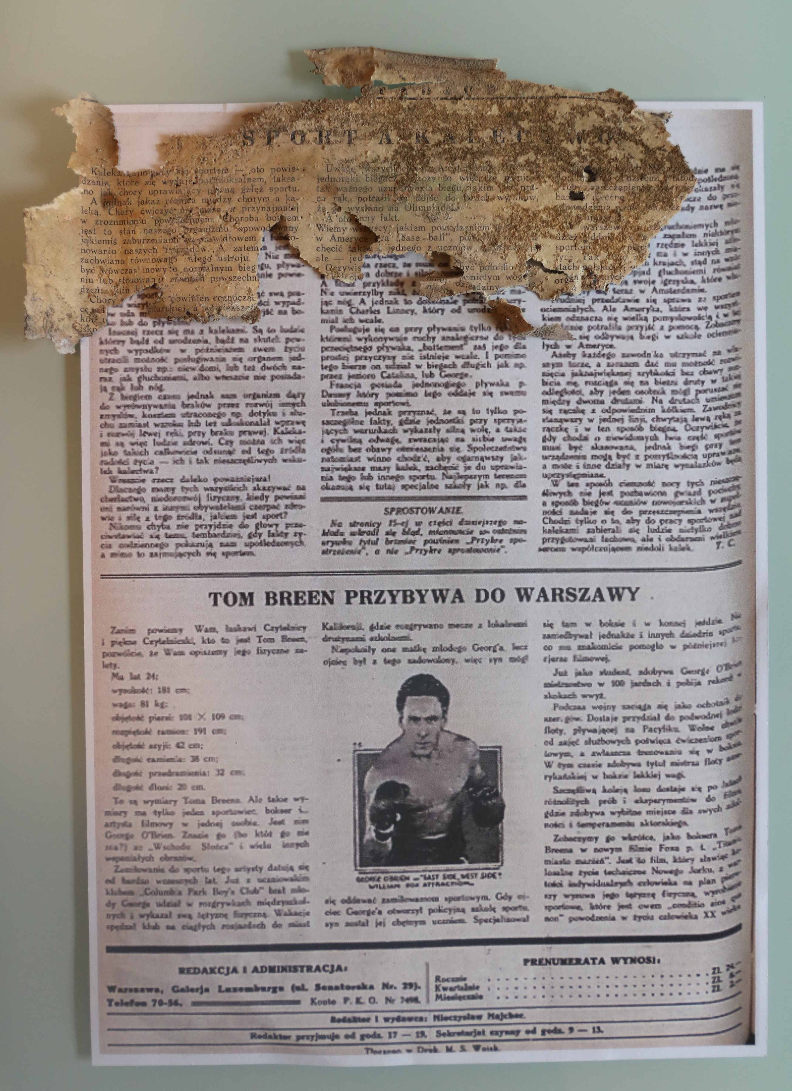 Przedwojenna gazeta "Stadjon" znaleziona podczas remontu w chojnickim "Medyku"