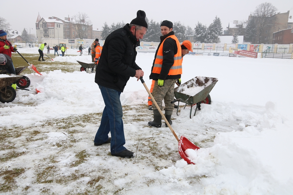 Zarząd i pracownicy klubu, trenerzy, młodzi zawodnicy, pracownicy sponsorów, ale też kibice – prawie 100 osób usuwa śnieg z boiska na stadionie Chojniczanki. O 9.00 ruszyła akcja „Odśnieżamy na Cracovię”. Wszystko po to, żeby „Chojna” mogła rozegrać u siebie mecz ćwierćfinałowy Pucharu Polski z Cracovią Kraków. Ten zaplanowany jest na 3 marca.